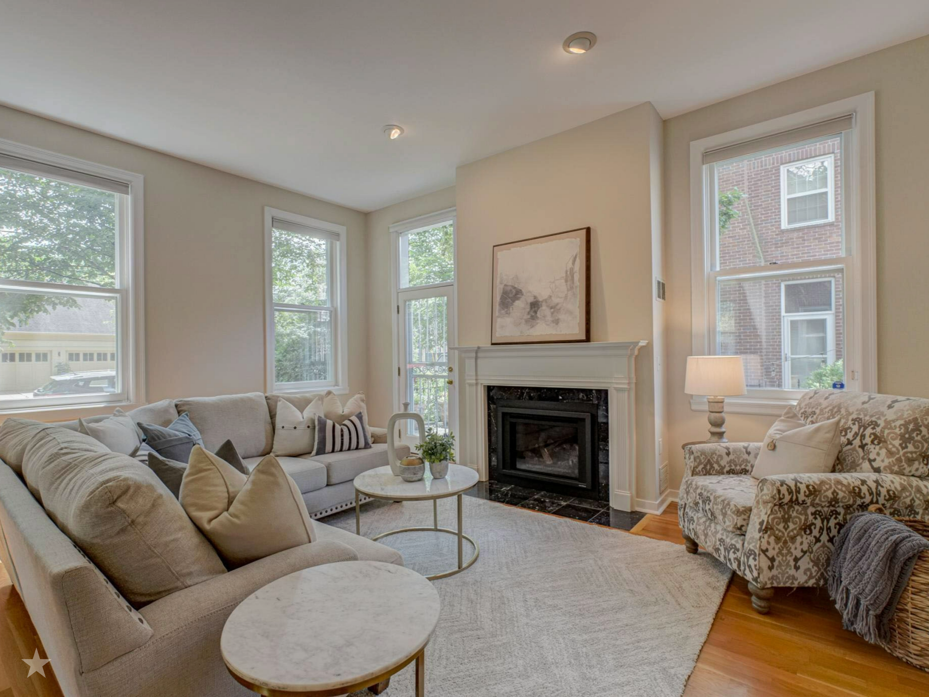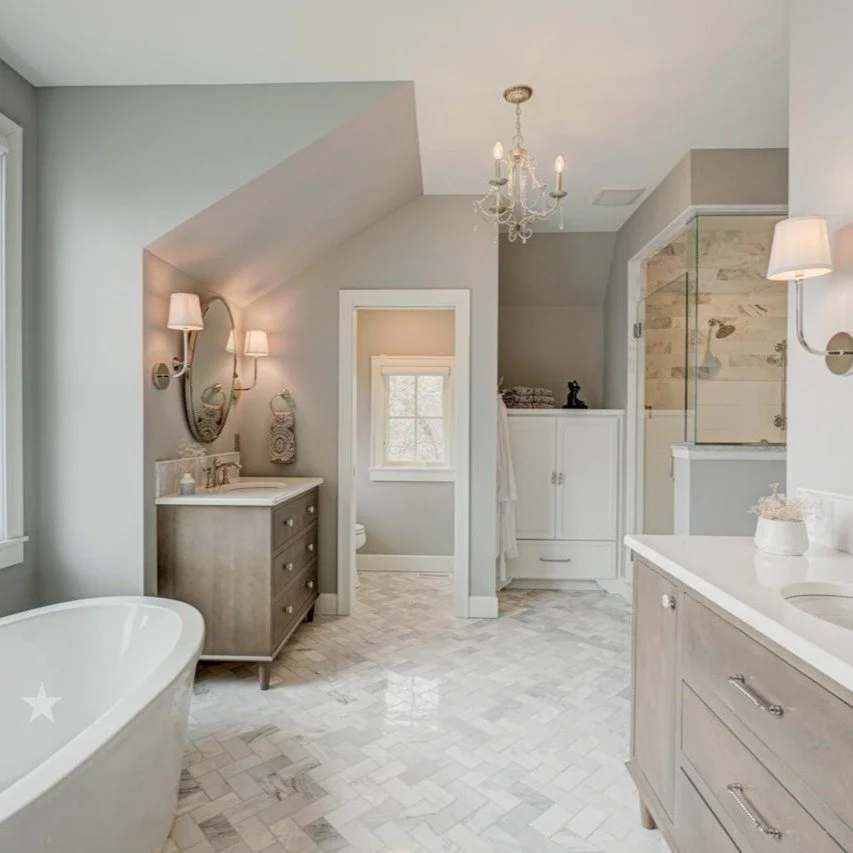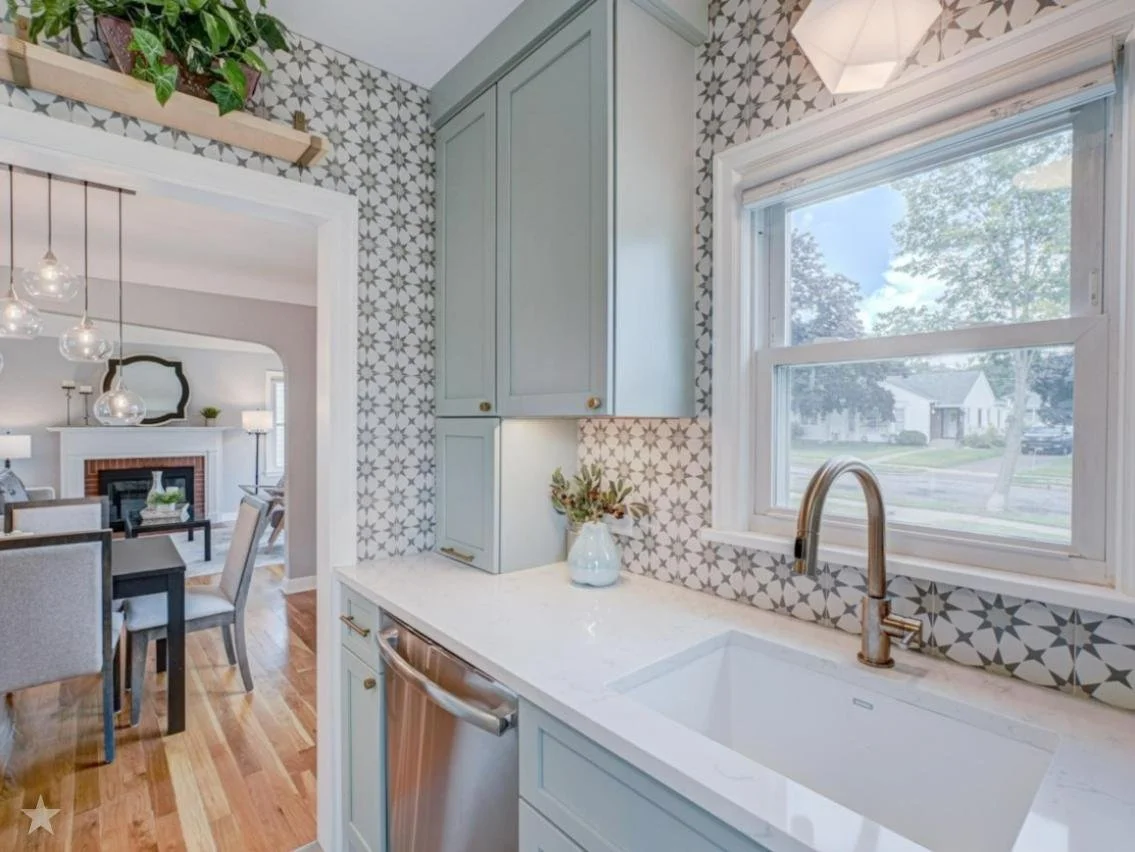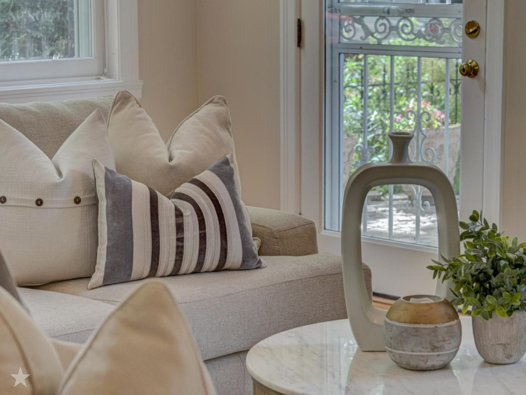 Pat wanted a fresh design for a basement space that includes a living area and home office. The design was inspired by a treasured memento - a print titled “Sunset” by American illustrator Norman Rockwell that was a gift to Pat from her late-husband given when the couple was first dating.